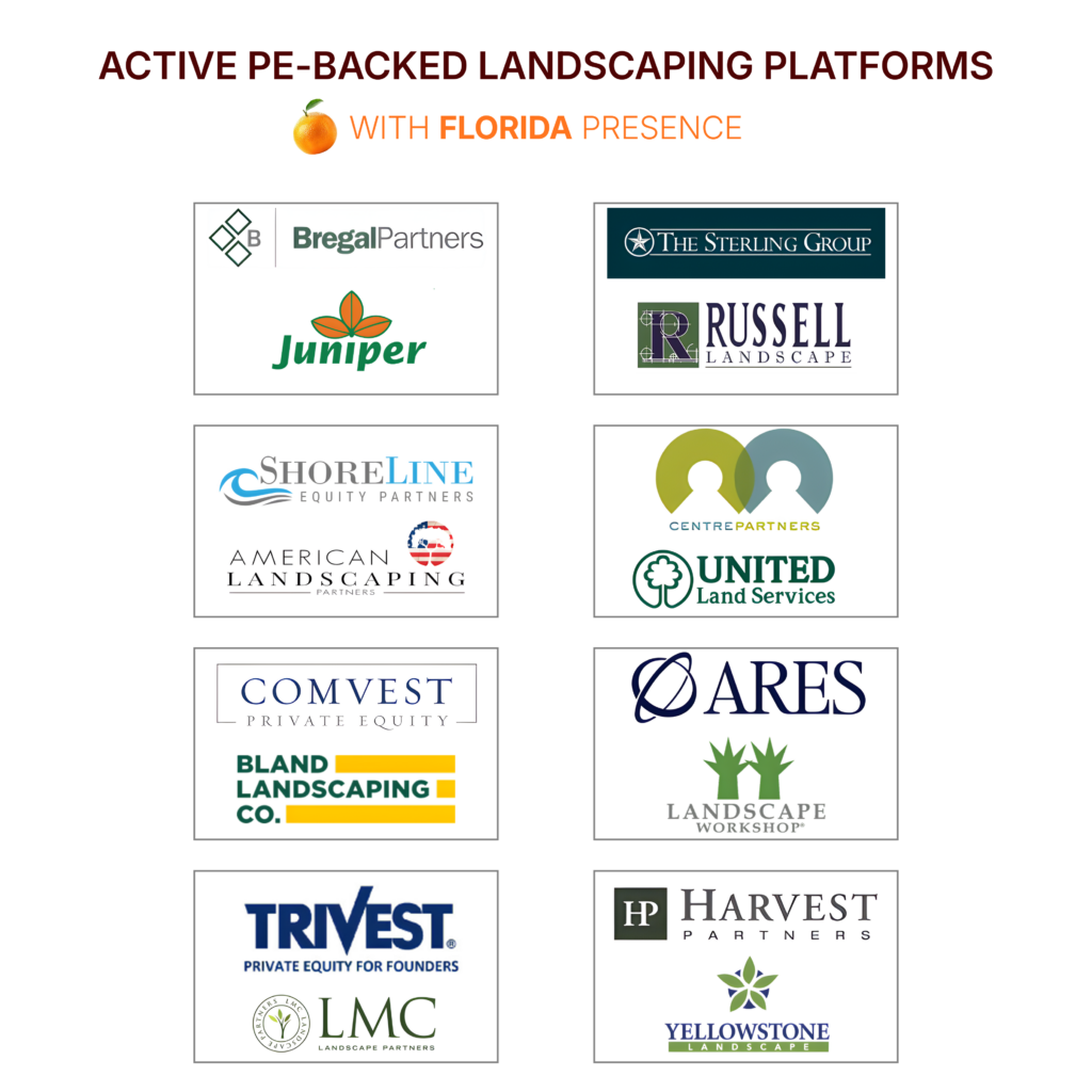 - Juniper Landscaping (backed by Bregal Partners) has completed multiple Florida acquisitions, including Landscape Maintenance Professionals in Tampa and Sarasota, as well as additional businesses across South Florida and the Panhandle